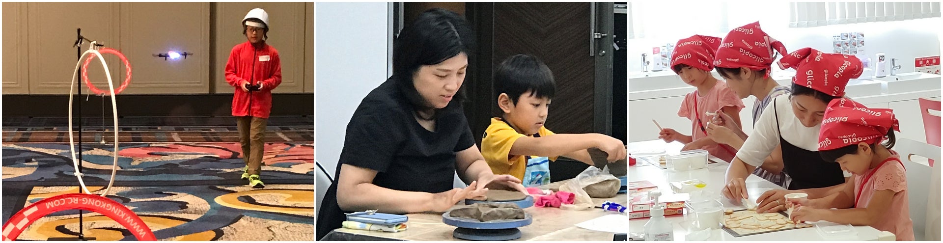 ホテルスタッフが講師を務めるテーブルマナー講座や、館内レストラン「すし萬」料理長による『親子すし教室』など、ホテルならではの講座をご用意いたします。ドローンのルールや災害時の役割などを学び、プログラミングによるコントロールを行うドローン体験教室や、金融庁や証券取引所などでの講演実績もあるキャサリン&ナンシーを講師に迎えた株式の仕組みを学べる講座は、小学生のお子さまはもちろん、中学生や高校生にもおすすめ。ほかに、甲南大学協力のもと、大学キャンパスにて受講いただけるプログラミング教室・サイエンス教室や、グリコピア神戸にてグリコピア見学と手作りビスコ体験ができるプログラムなど、ホテル外で学びを得られる講座もご用意しております。
