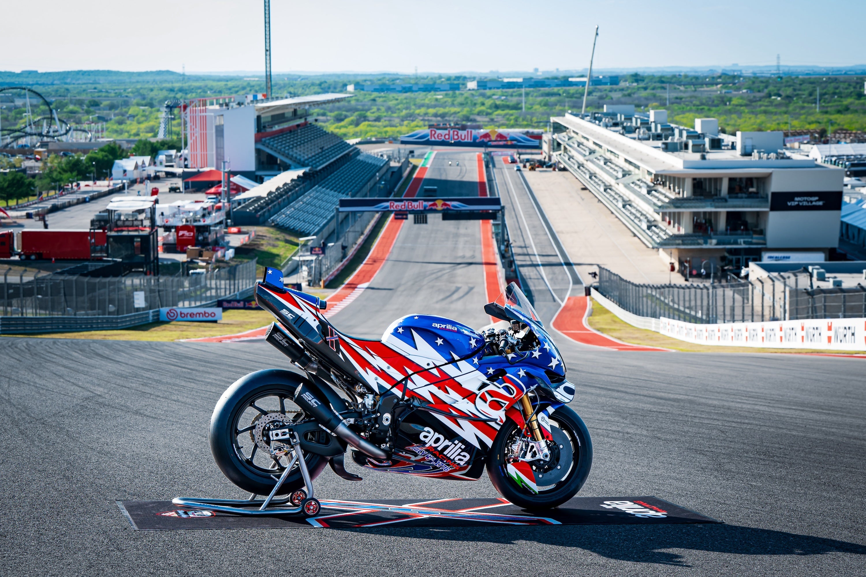 オースティン、2026年3月27日 – Aprilia racingは、アメリカGP開催中のサーキット・オブ・ジ・アメリカにおいて、MotoGPで培われた最先端テクノロジーを結集した特別仕様車「Aprilia X 250TH」を発表しました。この新型Aprilia X 250THは、1776年7月4日に署名されたアメリカ合衆国独立宣言250周年を記念して企画されたもので、生産台数30台のうち25台を米国市場向けに割り当て、残りの5台を世界各国向けに販売すること、そしてアメリカ国旗の色にインスパイアされた壮大な「星条旗」カラーリングを施すことが決定されました。