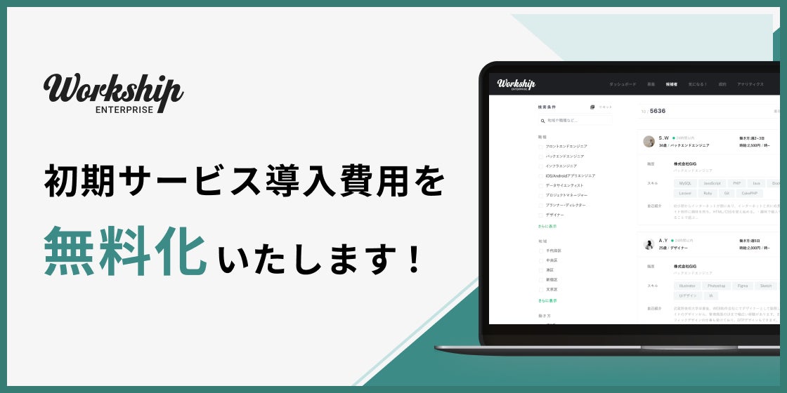 フリーランス・副業人材の採用サービス『Workship』は初期費用を無料化いたします