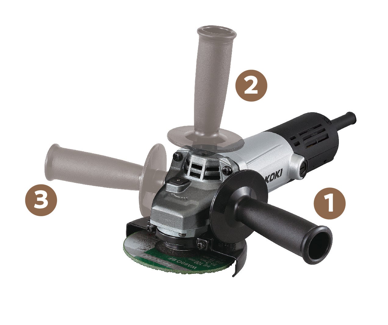 サイドハンドルを3箇所に取り付け可能にしたことで、狭所での作業や切断作業がしやすくなりました。