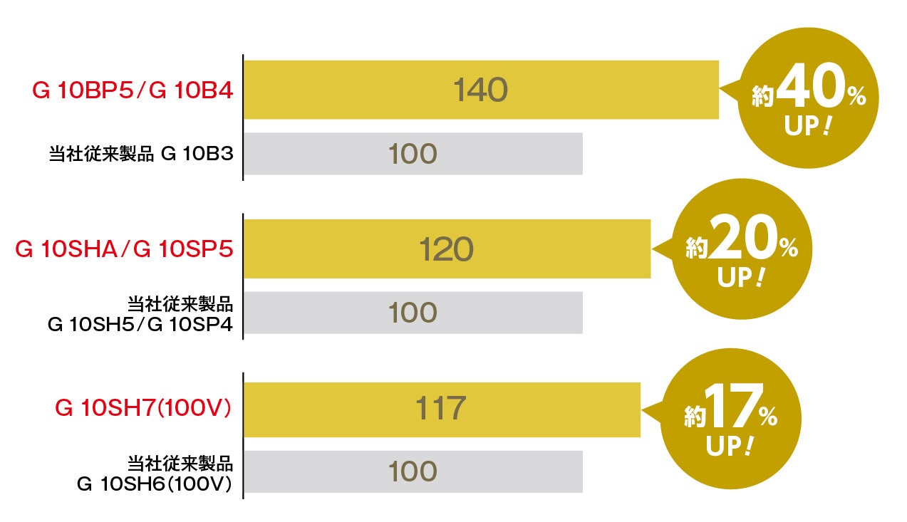 最大出力の向上(最大出力1,160W/G 10SH7シリーズ、最大出力1,100W/G 10SHAシリーズ、G 10SP5)
