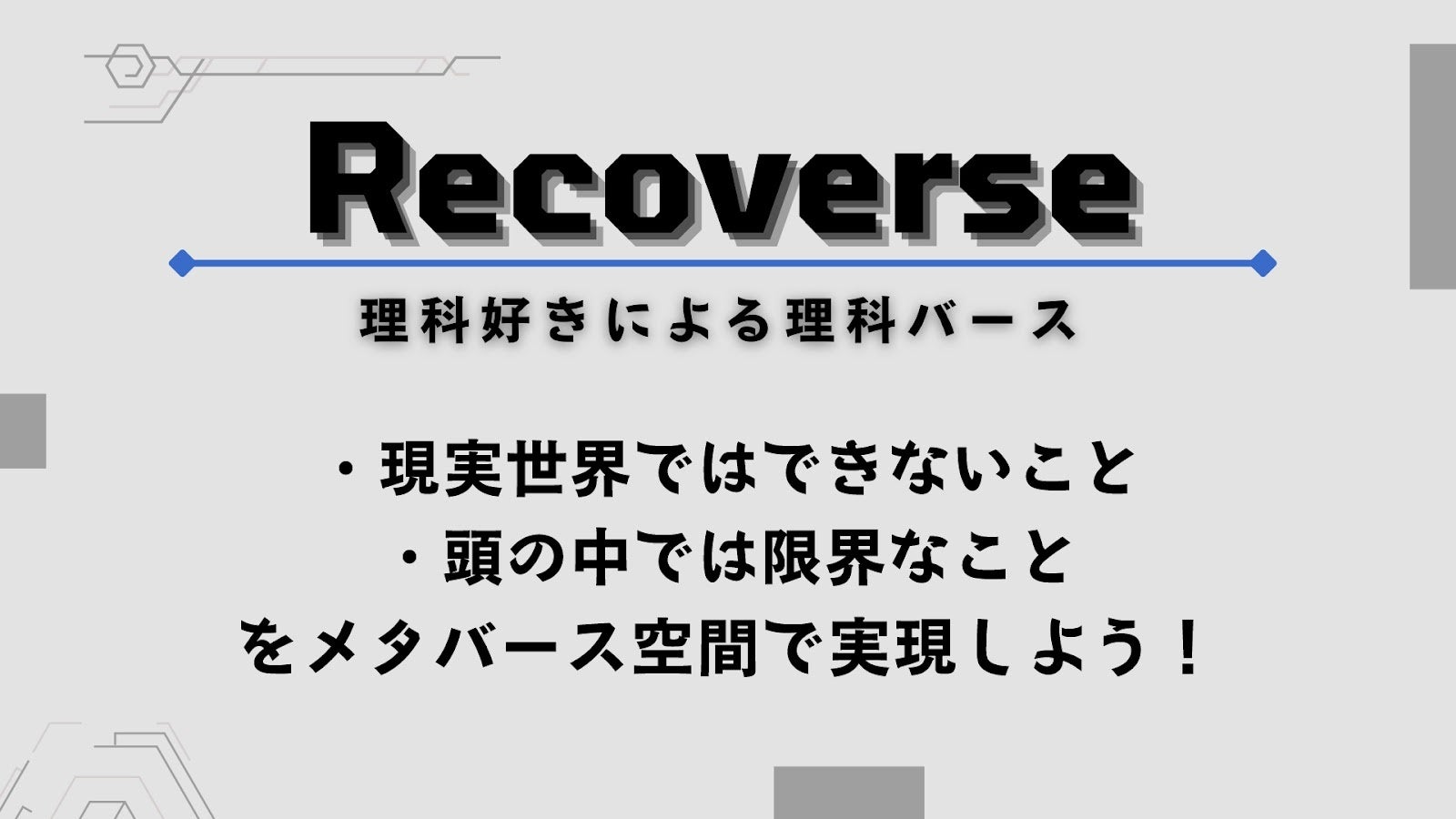 イベントの結果、MEキャンパス運営事務局による審査が行われ、チーム「情熱チキン」による、理科に苦手意識を持つ高校生に対して、体験型補助教材としてメタバースを活用する「Recoverse」が最優秀アイデアとして選出されました。