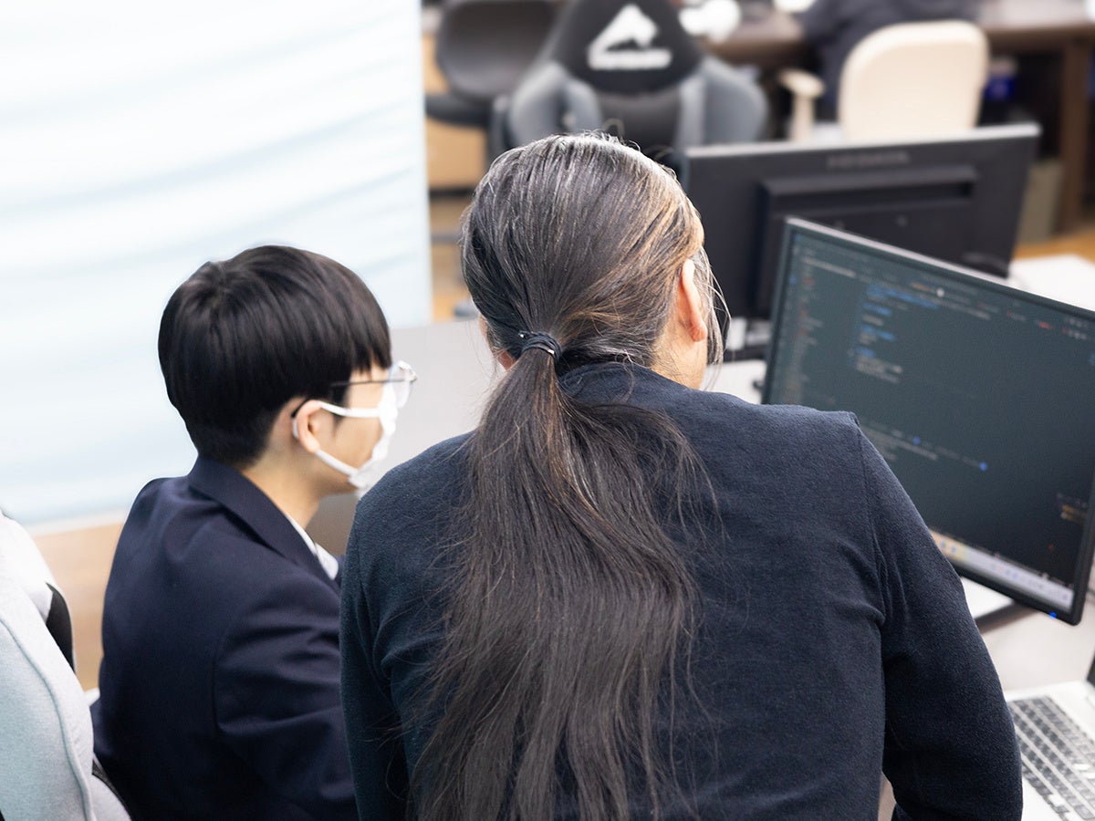 今回の受け入れは「プログラミングが好きな息子にITの仕事を体験させたい」という保護者からの相談をきっかけに実現しました。生徒はプログラミングやUI/UX改善など、実務に近い工程に挑戦し、技術のおもしろさと難しさを体験。トライやる・ウィークを通じて、生徒が「エンジニアになりたい」という夢を具体的に描けるよう、当社も地域のIT企業としてサポートしました。