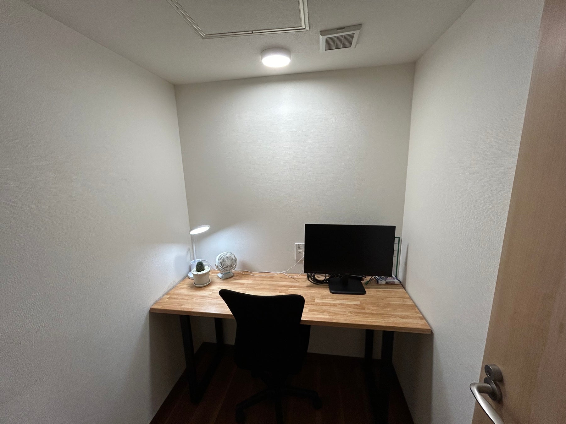 4名まで利用できる会議室。打ち合わせはもちろん、完全個室のため商談の場所としてもご利用いただけます。