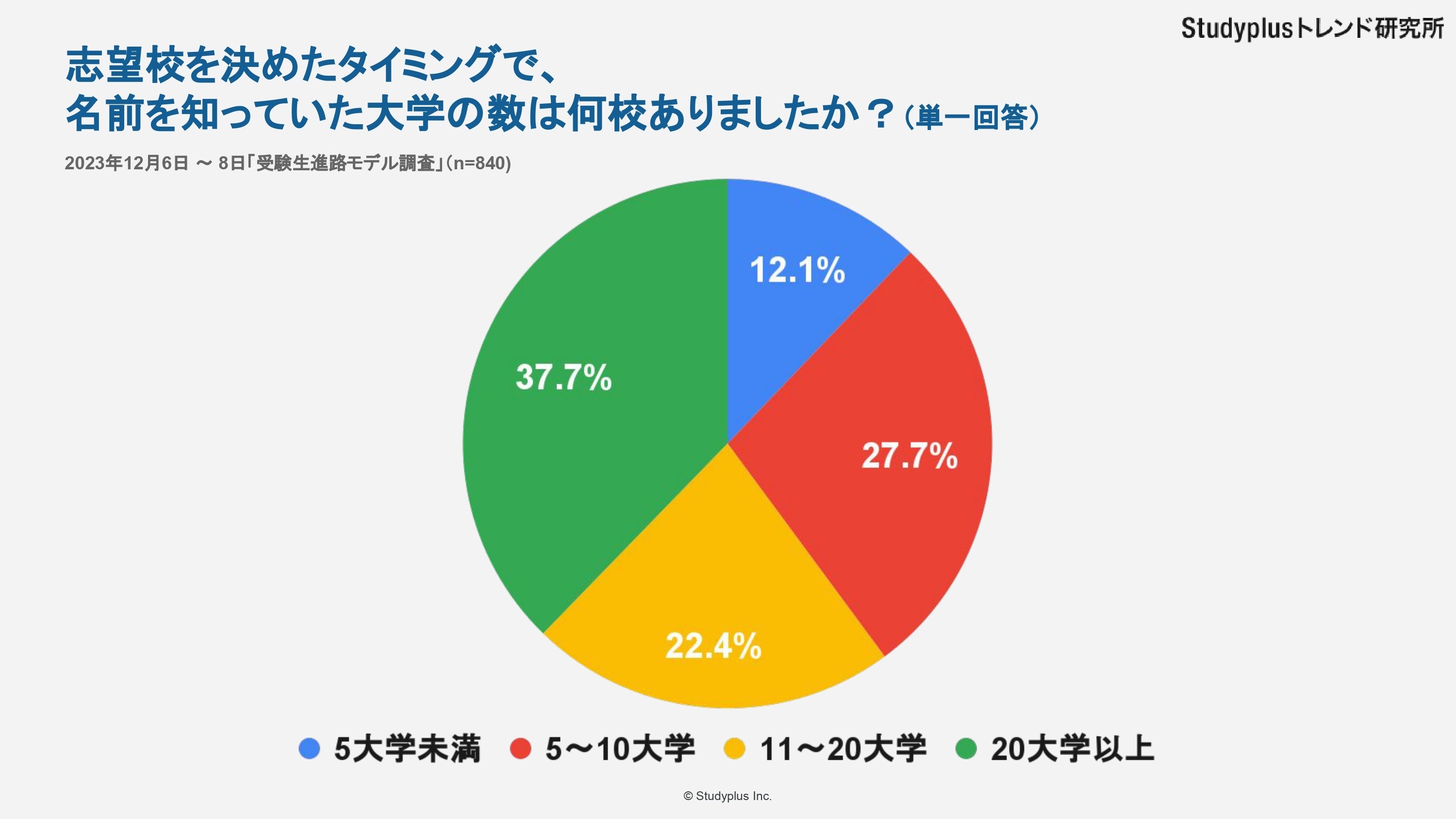 【調査項目】志望校を決めたタイミングで、名前を知っていた大学の数は何校ありましたか?(単一回答)