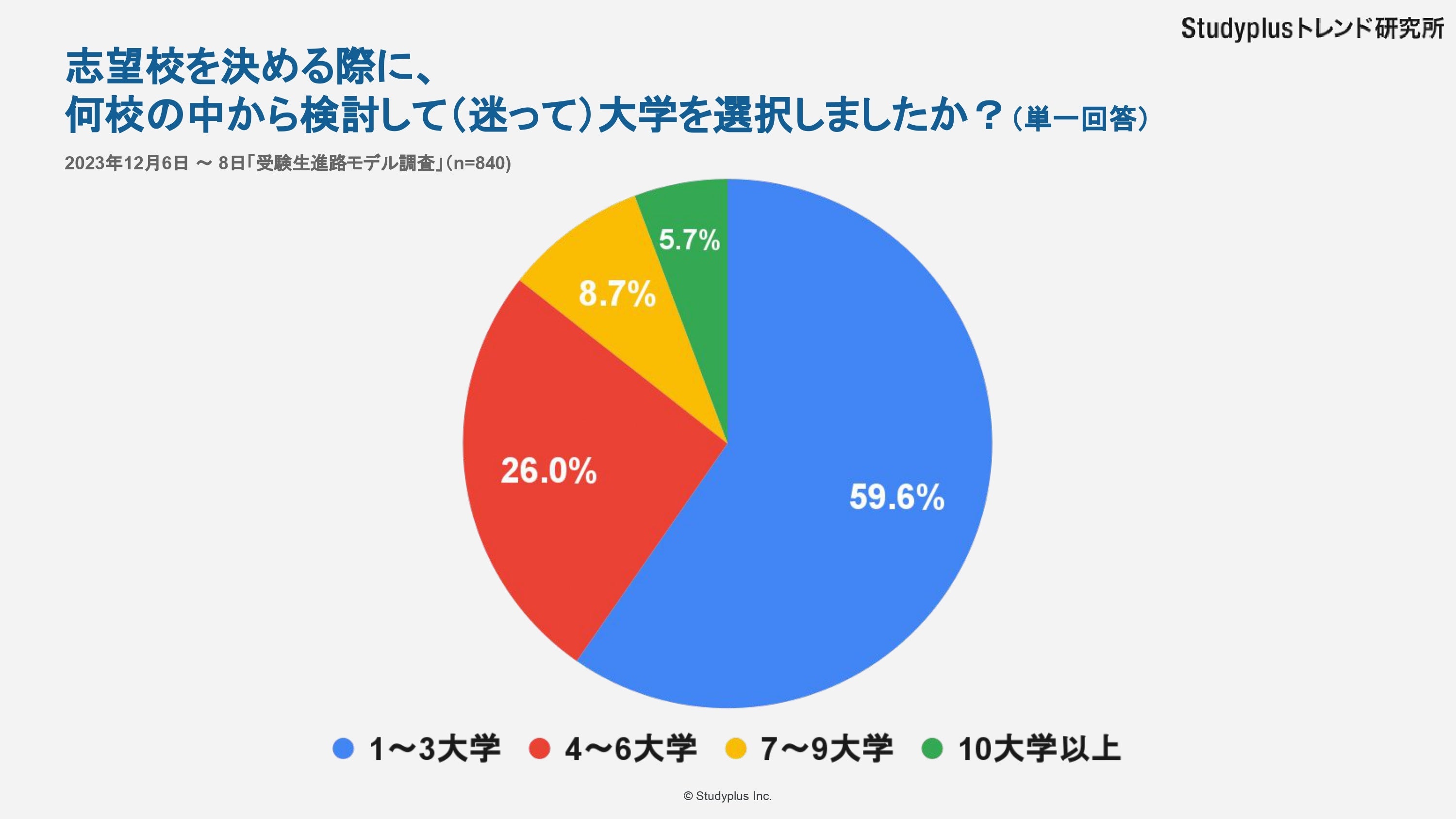 【調査項目】志望校を決める際に、何校の中から検討して(迷って)大学を選択しましたか?(単一回答)