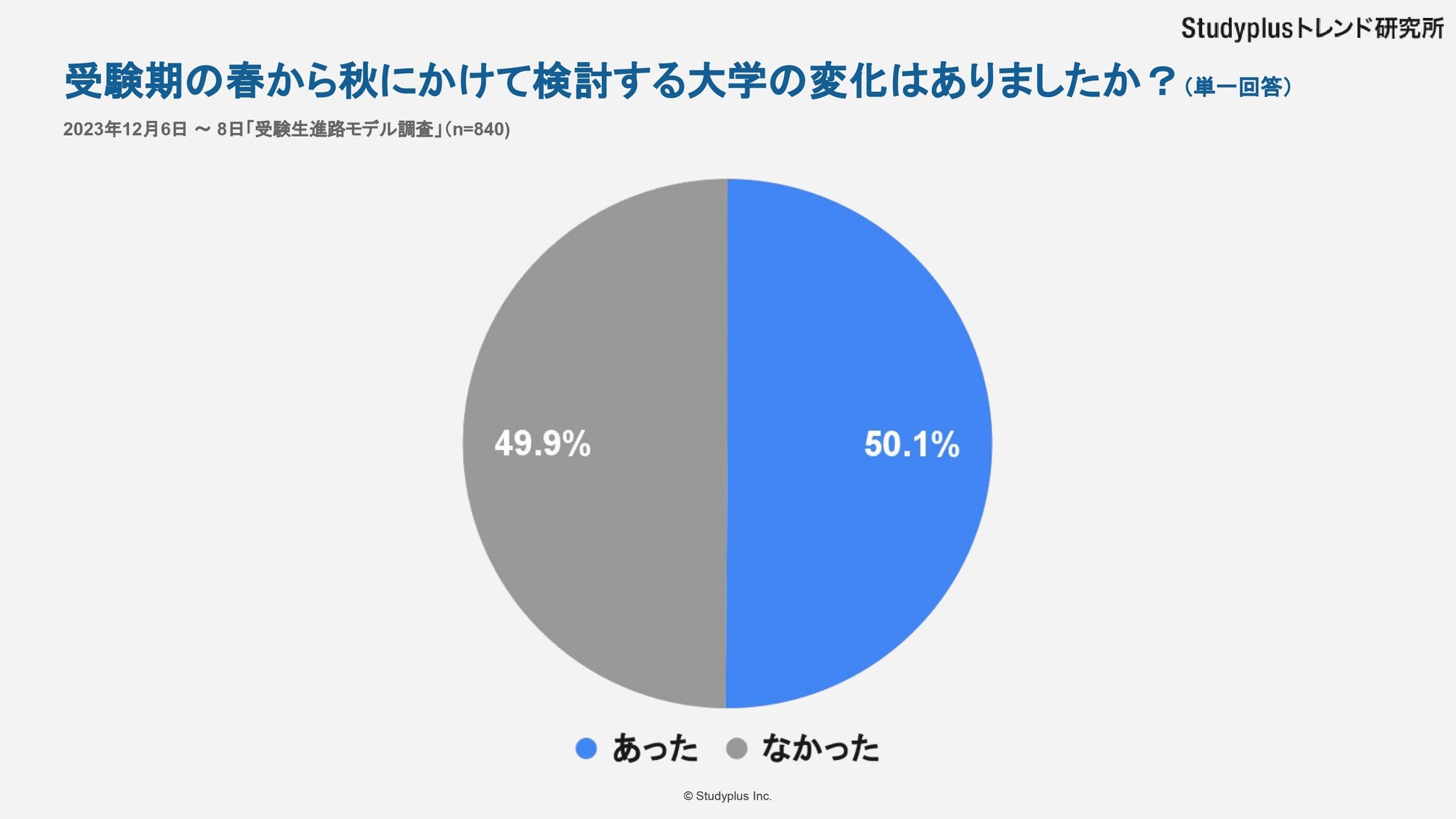 【調査項目】受験期の春から秋にかけて検討する大学の変化はありましたか?(単一回答)