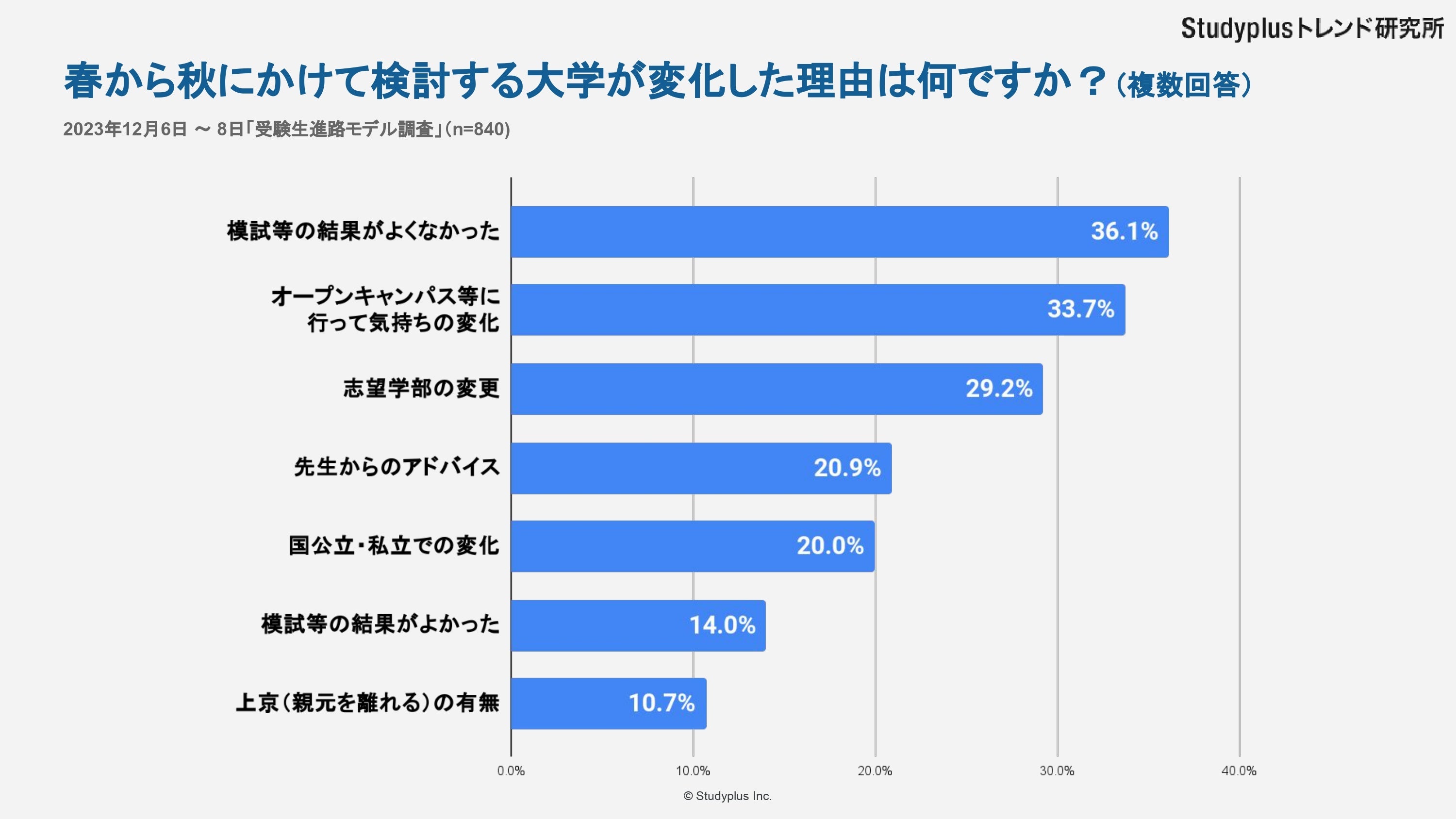 【調査項目】春から秋にかけて検討する大学が変化した理由は何ですか?(複数回答)
