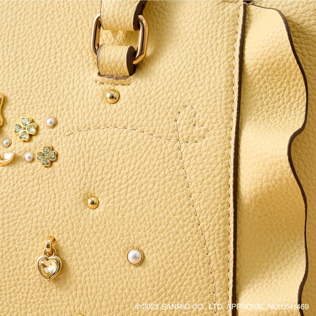 「ポムポムプリン」をイメージしたイエローをメインに、オリジナルのリボンや、クローバーのビジュー、揺れるハートのビジューがポイントの