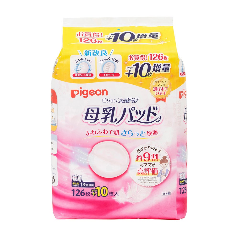 新改良の全面通気性シートでムレにくい!肌さらっと快適。肌にあたる面はふわふわでやさしい肌ざわりです。多くの母乳育児ママに選ばれている母乳パッドです。