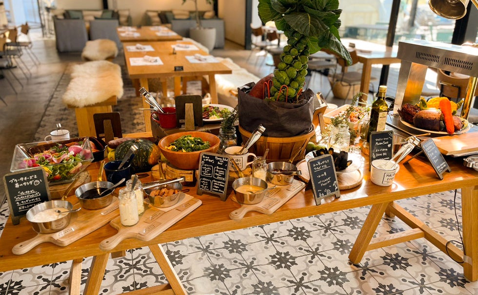 株式会社リビエラ東京(本社:東京都港区 代表取締役社⻑ 小林昭雄、以下リビエラ)は、神奈川県逗子市で展開する大人のマリーナリゾート『リビエラ逗子マリーナ』のL.A.セレブに大人気で日本唯一のレストラン「マリブファーム 逗子マリーナ(以下マリブファーム)」にて、3月末までの期間限定でランチの前菜を愉しめる「Appetizer BAR(以下アペタイザーバー)」の提供を開始しました。「アペタイザーバー(2,980円)」単体のほか、「アペタイザーバー」に合わせてメインメニューをお選びいただくセットコースも選べ、自由度の高いランチをお愉しみいただけます。“FRESH,ORGANIC,LOCAL”をコンセプトとするマリブファームでは、コンポストを活用した湘南で循環する野菜をはじめ、サステナブルシーフードや旬の食材を用い、“食べて身体の中からキレイになる”お料理を提供しています。