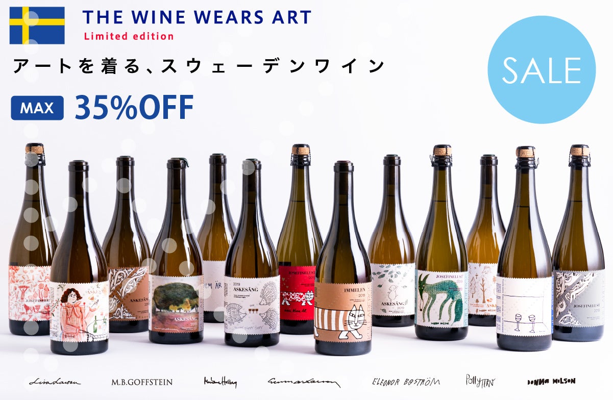 世界中のワイン通が大注目!トンカチ所属アーチストのデザインラベルに衣装チェンジした「スウェーデンワイン」が、期間限定でお得な価格にてご購入いただけるセールを開催しています。