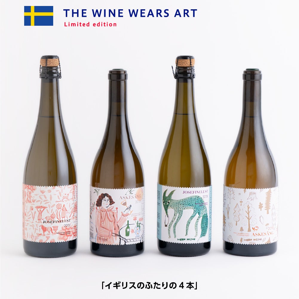 こちらは、イギリスのテキスタイルアーティストのドナ・ウィルソンと、陶芸家でイラストレーターのポーリー・ファーン。「自然」という共通ワードを胸に作品を作り続ける、イギリスで活動するふたりのアートワイン4本セットです。森、花、人、動物。生き物すべてが共存する世界を、お楽しみください。