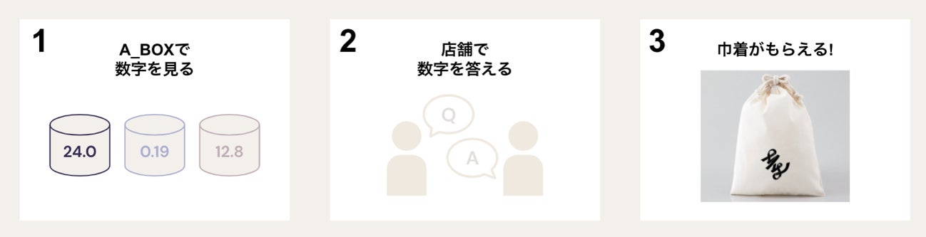 また、A_BOX内の展示に留まらず、素材にこだわりを持ってものづくりをしている参加ブランドの店舗へ行くことで、日本橋のファッションをさらに深く体験することが可能です。ブース内に記載してある「数字」の正体を店舗にて当てることができれば、素敵なプレゼントがもらえます。素材という観点からブランドの背景を知り、素材に触れ、身にまとうことで、いつもと違う視点からファッションを楽しむことができます。