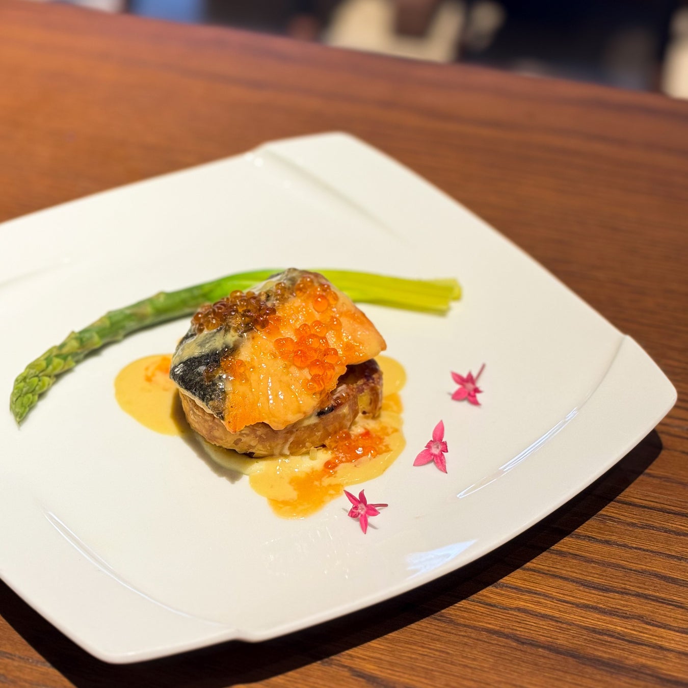 サーモンのポワレ ノイリーブランソース いくらとキッシュ添え ¥2000