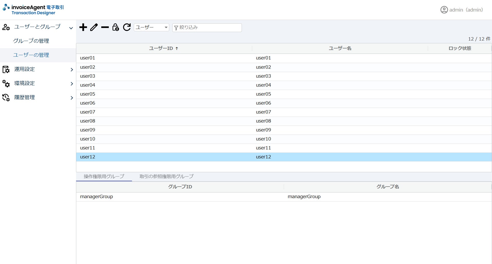 「Transaction Designer」は、帳票の配信だけではなく、配信前に承認フローを設定でき、取引先からの受信帳票に対する返信や承認リアクションの付与も可能です。またユーザーごとに閲覧権限や操作権限を設定できるため、管理者は管理画面上で全ユーザーのリストを作成や確認し、帳票の送受信を包括的に管理することができます。効率的で安全な取引業務をサポートする機能です。