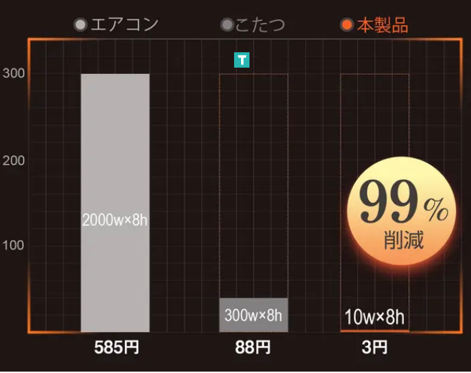 消費電力が低いのでとても経済的。使用時間をあまり気にせずに使えるので、寒さを我慢しなくていい。