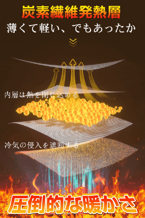 発熱炭素繊維は、電力を効率的に変換し、熱エネルギーに変えることができます。そのため、電力消費を最小限に抑えながら効率的に発熱し、圧倒的な暖かさを実現します。