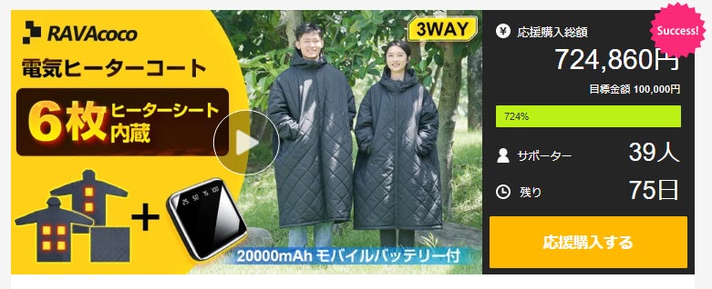 本日、10月6日(金)より、当社商品「多機能電気ヒーターコート」がMakuakeにて応援購入を開始致します!