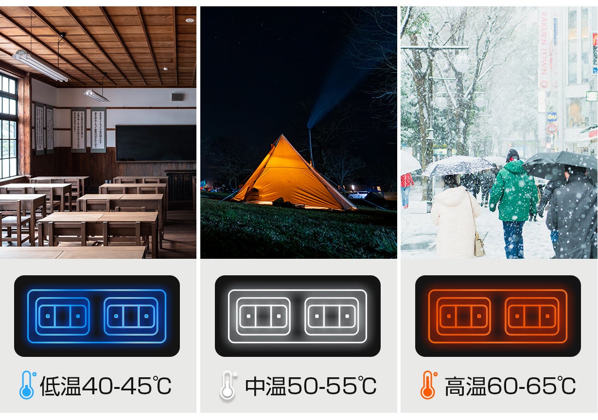 3段階の温度調節可能!寒さに応じて好みの温度に!20000mAhモバイルバッテリー付き!