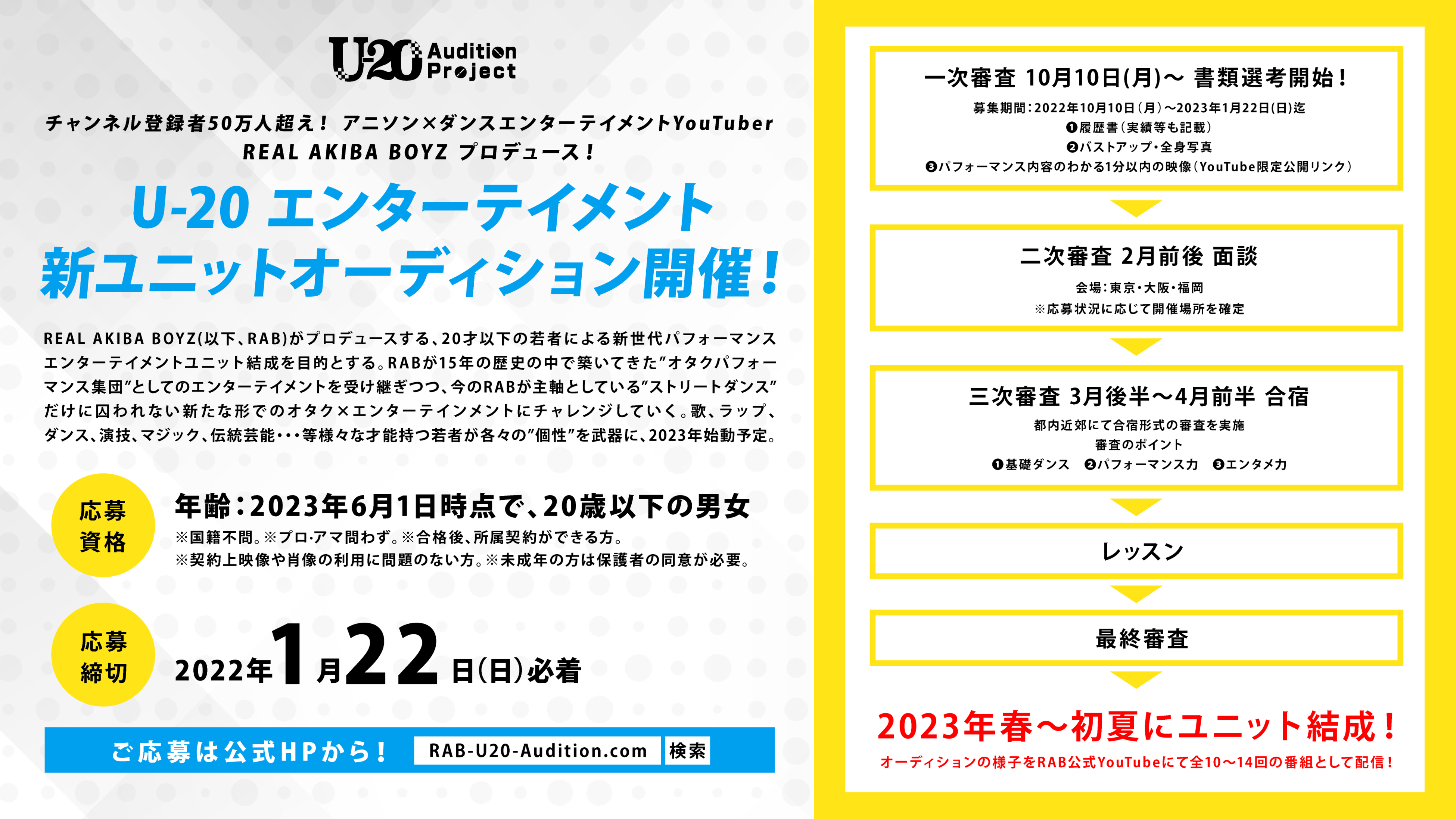 「RABがプロデュースする新ユニット結成に伴い、20歳以下の若者を募集!」