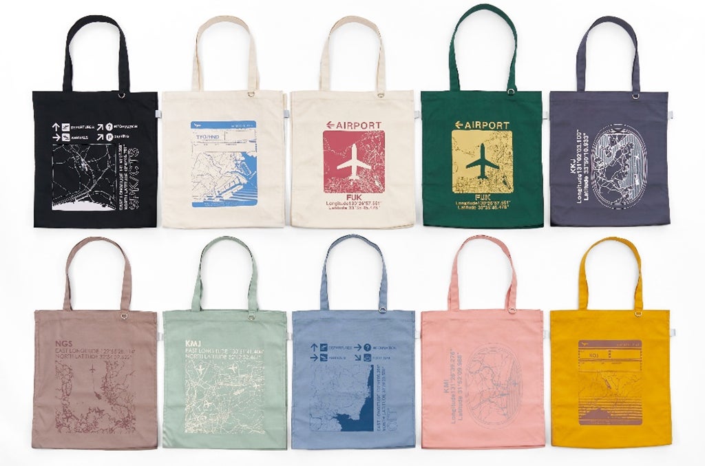 国内旅客数の多い空港※(羽田空港、新千歳空港、福岡空港)に加え、九州6空港(北九州空港、長崎空港、熊本空港、大分空港、宮崎空港、鹿児島空港)を選定。旅マエ~旅中をイメージし、フライトレーダー、交通標識、空港内の案内看板や飛行機の窓などをモチーフに空港周辺の地図をデザインした、カジュアルなマチ付キャンバストートを展開します。