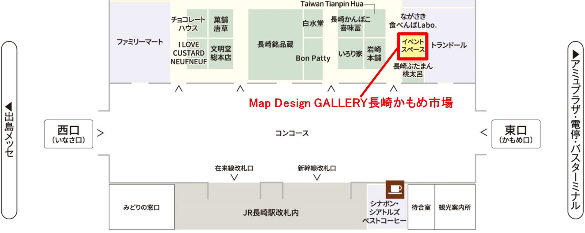 〒850-0058 長崎県長崎市尾上町1-67 JR長崎駅 長崎街道かもめ市場 イベントスペース |