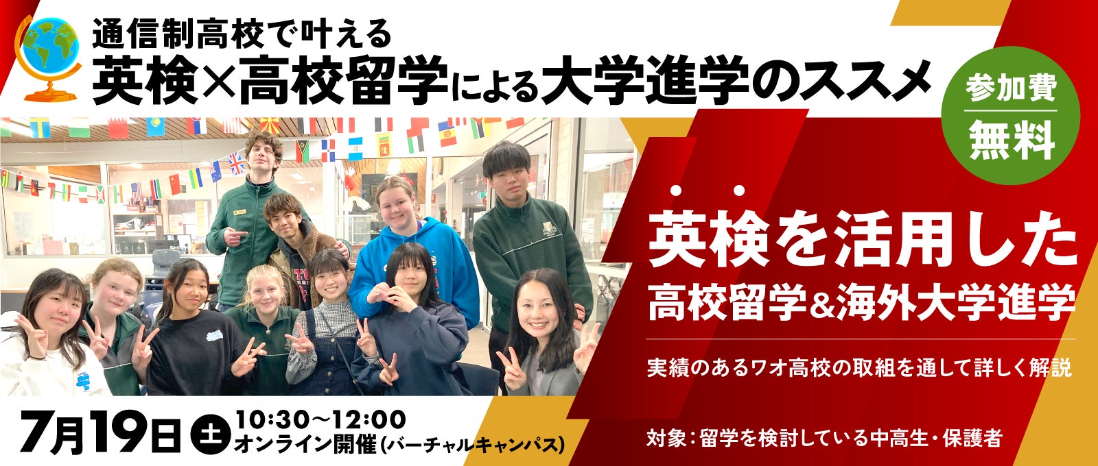 【ワオ高校・留学セミナー】通信制高校だから叶えられる夢の進路へ!英検×高校留学による国内・海外大学進学のススメ