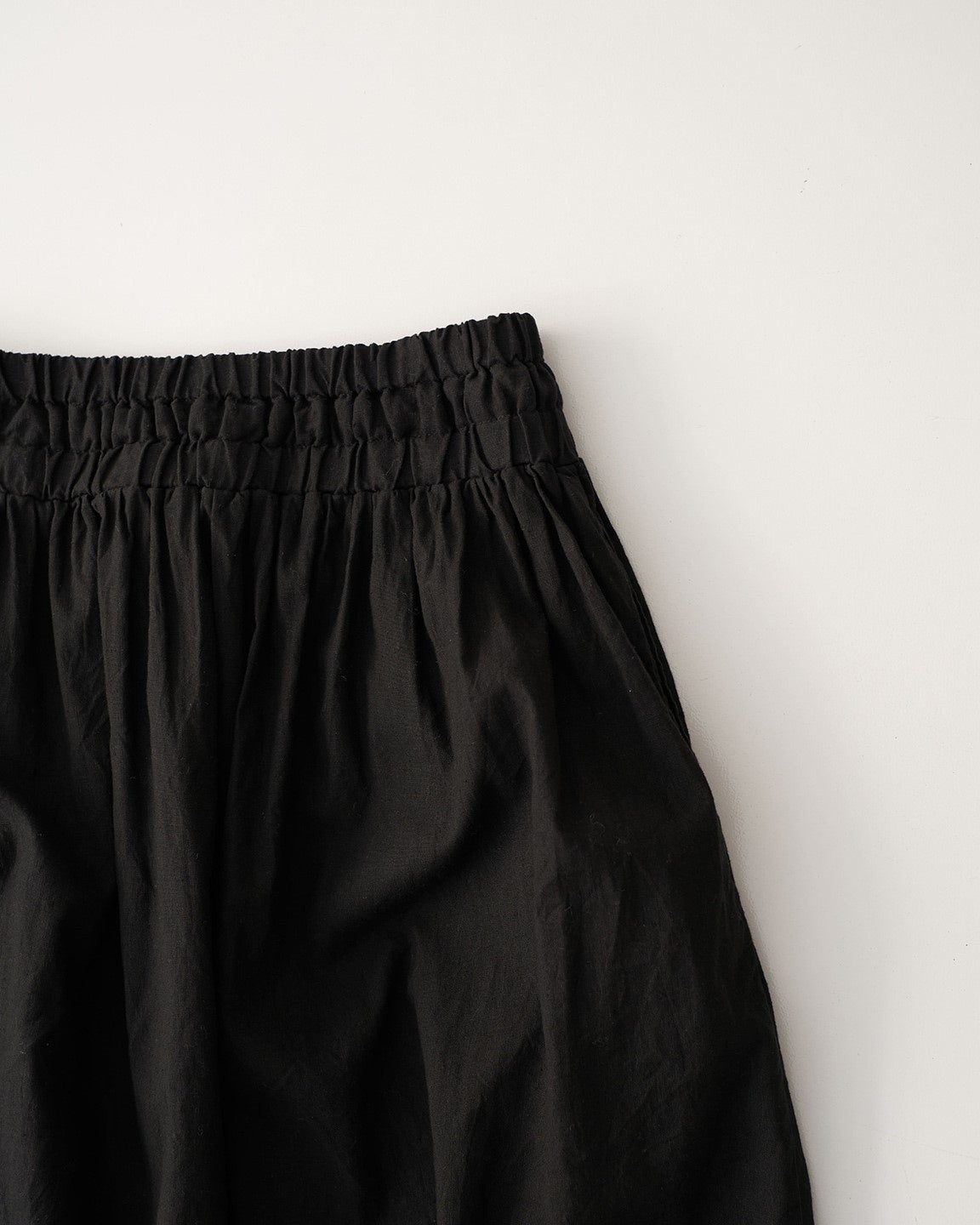 すっきりとしたシルエットが上品なギャザースカート。ウエストは幅を広めにし、おなか周りをすっきりと見せてくれます。シンプルなデザインなので合わせるトップスも選ばず、さまざまな着こなしをお楽しみ頂けます。同シリーズのボレロブラウスとのセットアップの着こなしもおすすめです。