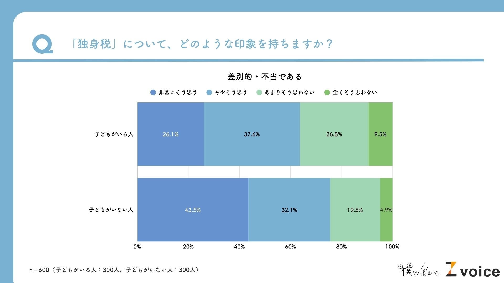 子どもがいない人の75.6%が「差別的・不当」と回答。子どもがいる人でも6割超