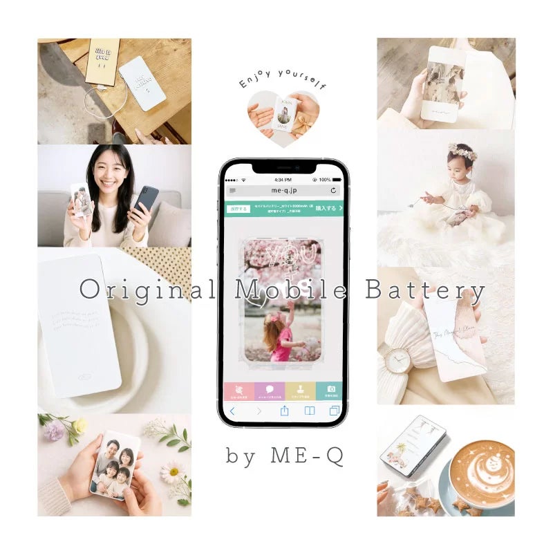 スマートフォンやタブレットの普及に伴い、日常生活で欠かせない存在となったモバイルバッテリー。ME-Qではこの実用性の高いアイテムを、1個から名入れ・オリジナル印刷できるサービスを提供しています。