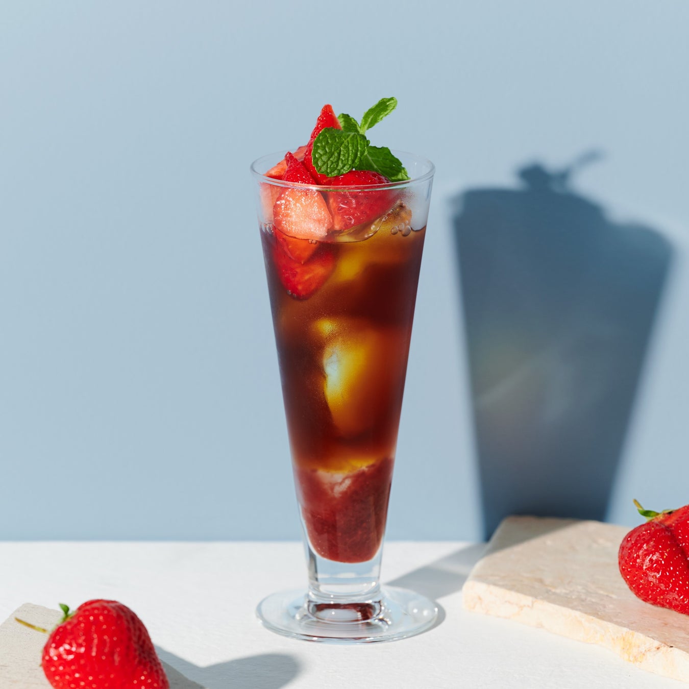 洋梨を思わせるコーヒーの華やかな香りに、いちごのやさしい甘みがふわりと重なり、すっきりとしたフルーティーな味わいが広がる一杯に。いちごの生産量全国2位の福岡県産のハリと艶があり濃厚な甘さが特徴の「あまおう」を使用しました。