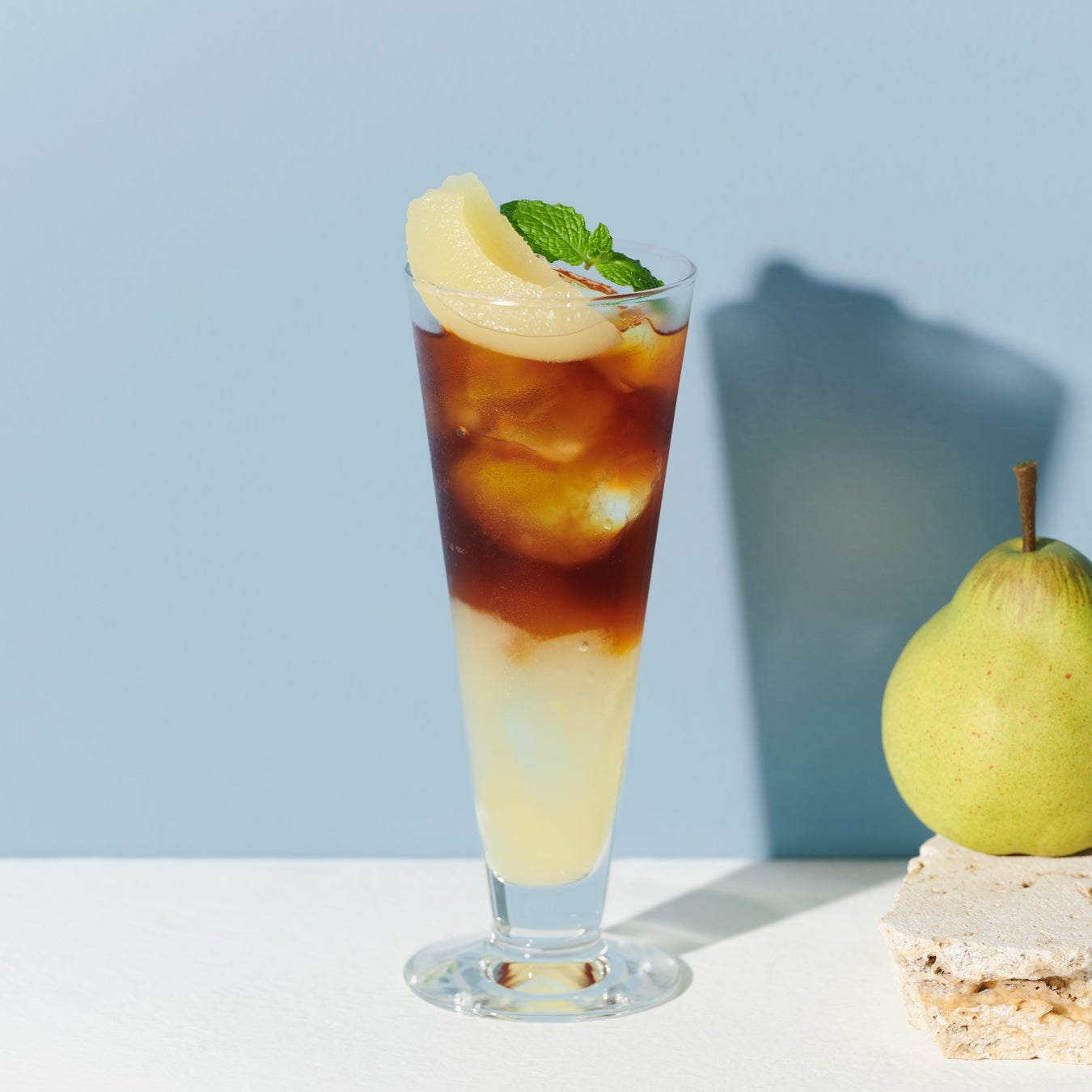 洋梨を思わせるコーヒーのやさしい甘みに、みずみずしいラ・フランスの果汁と炭酸の爽やかな刺激が重なり、穏やかな甘みの中に、コーヒーのもつほのかなスパイスを思わせる余韻が広がる心地よくすっきりとした味わい。化学肥料、動物性肥料、除草剤不使用にこだわる山形県のラ・フランス専業農家が作った果汁100%のラ・フランスジュースを使用。