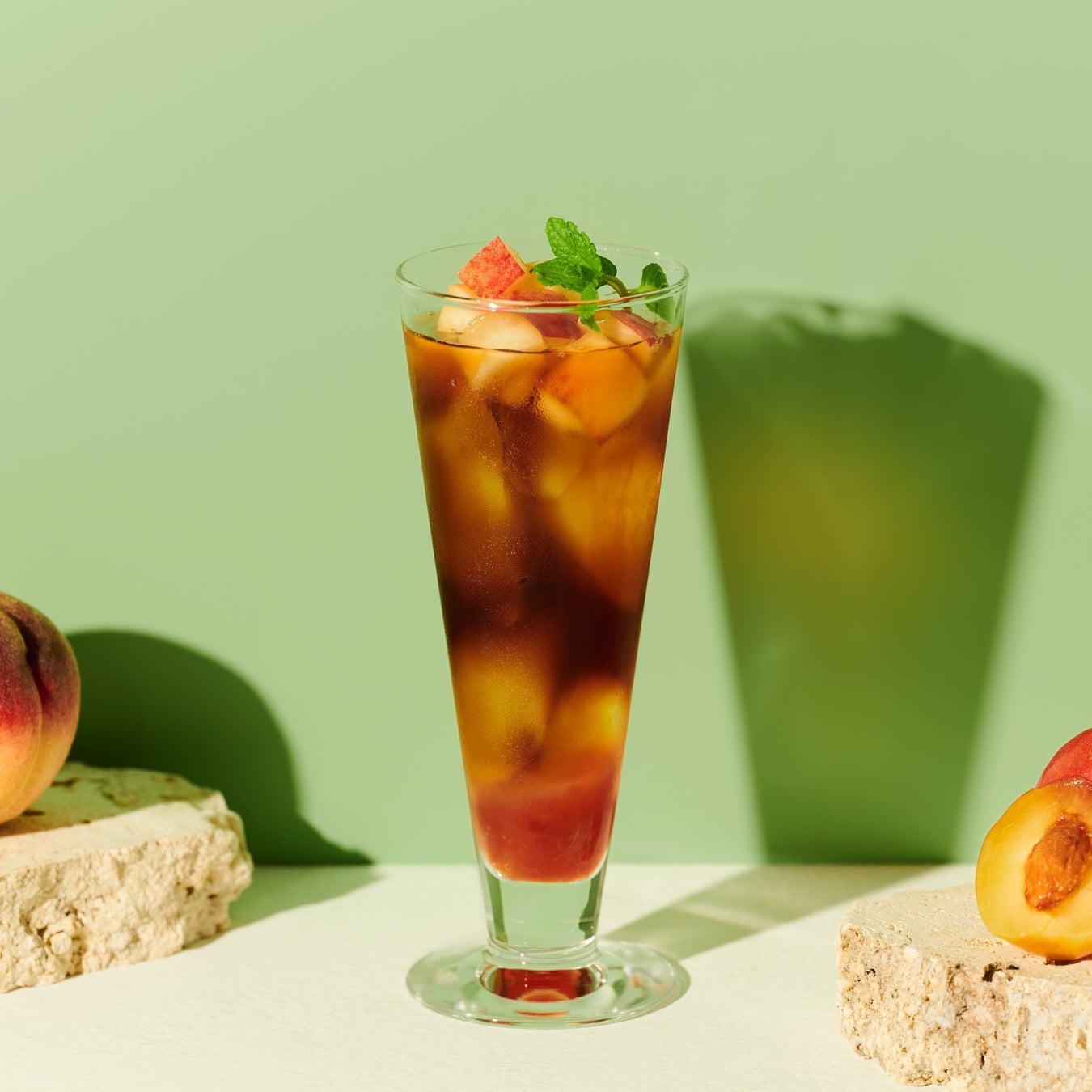 コクと香ばしい風味のあるコーヒーに、甘さのある桃とすっきりとした酸味のあるすももが加わり、はちみつのような華やかな甘い余韻とビターのコントラストが楽しめる一杯に。明治時代からフルーツを栽培し、樹上完熟にこだわった福島県産の桃を使用しました。