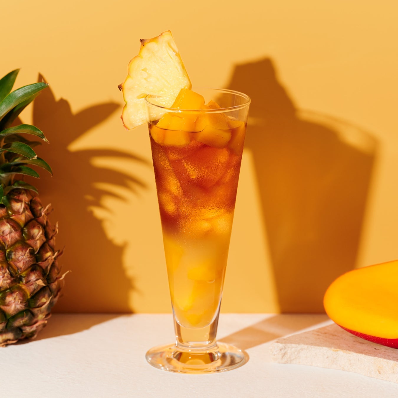 ジューシーなパイナップルの甘みが加わり、コーヒーそのものの甘さがより明るい印象に残る一杯。沖縄の太陽をたっぷり浴びて育ったマンゴーと、たった1ヶ月ほどしか収穫できない“パインの王様”とも呼ばれる沖縄県産の希少なパイナップル「ゴールドバレル」を使用しました。
