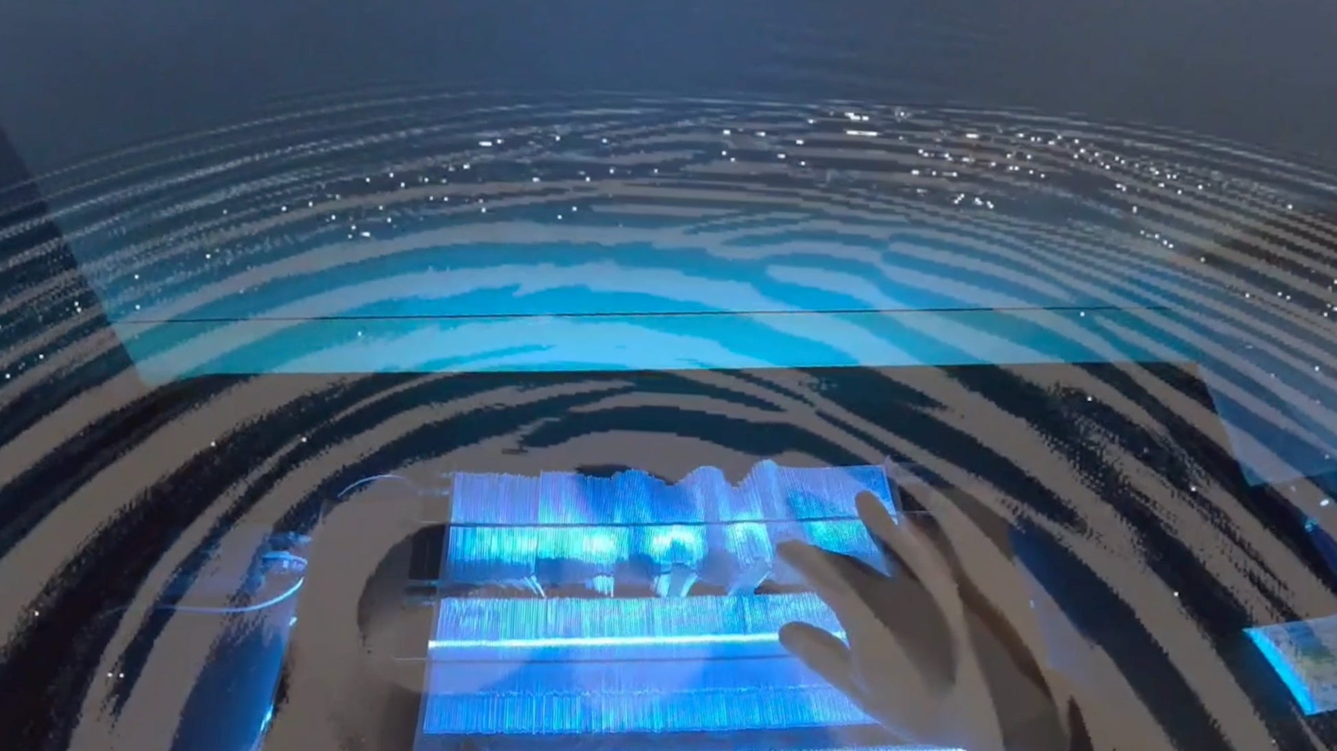 今回の作品「 AugmentedWaves」では、作品に触れることで物理的なオブジェクトが波のように揺らぎ、さらにMRによって波紋のエフェクトや音が加わることで、現実と仮想が交錯する不思議な体験を楽しめるようになっています。