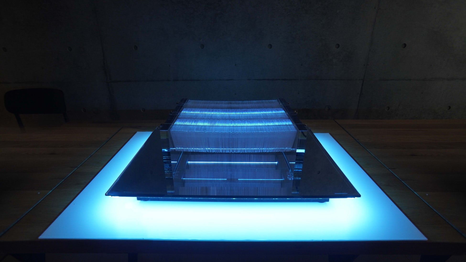 指でアクリル板を順に弾くことで、ウェーブマシンのように波を発生させることができるオブジェです。Gugenkaでは、波のオブジェをMRで体験できるコンテンツを作成しました。