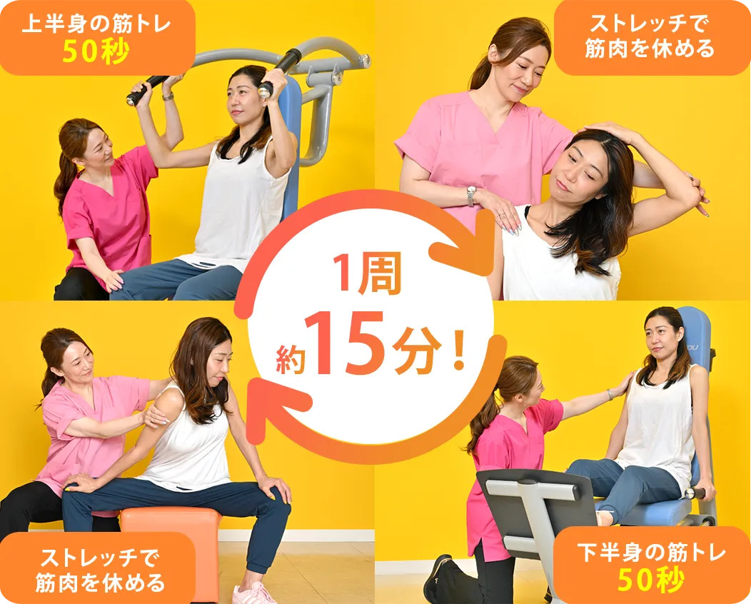 フィットネス&ストレッチは女性専用の30分通い放題フィットネスです。マシン運動とストレッチを約1分ずつ交互に繰り返すことで柔軟性と筋力の発達をサポートします。毎月変わるストレッチメニューが人気です。