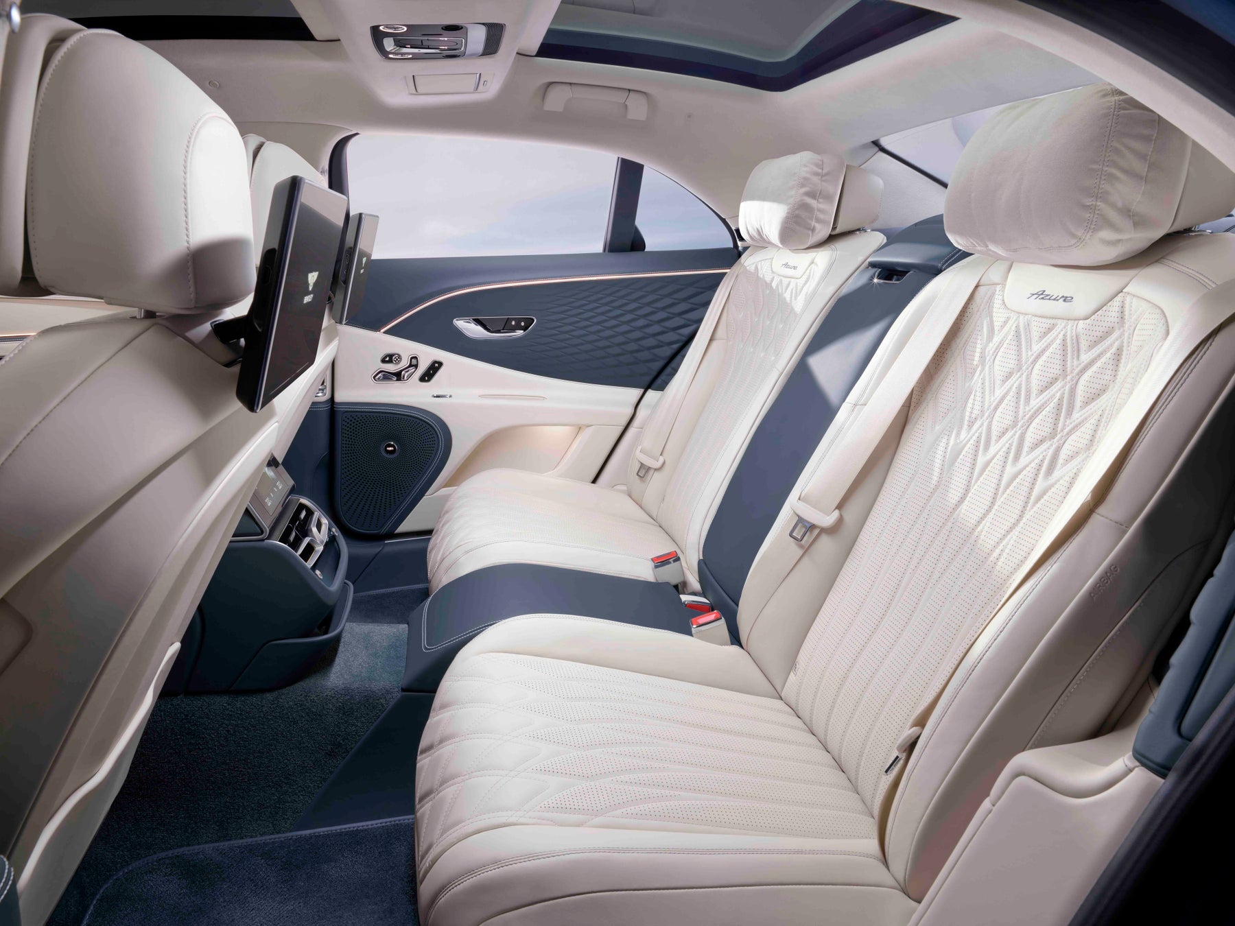 そのほかの魅力的な装備としては、ムードライティング、シートおよびドアインナーパネルに施された3Dハーモニーダイヤモンドキルティング、アズールの刺繍があしらわれたヘッドレスト、オープンポア・クラウンカット・ウォールナットのウッドトリムなどが挙げられます。
