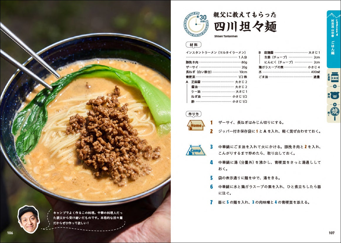 シーズニングをはじめとする中華鍋の使い方もしっかり解説しているので、はじめてでも大丈夫。さらに、キャンプ場での調理をスムーズにするための家での準備も丁寧に解説しています。