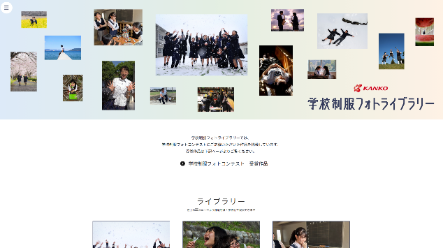 菅公学生服株式会社が主催する「学校制服フォトコンテスト」の応募作品を掲載しているオンライン写真ギャラリーです。コンテスト歴代受賞作品を含む、約1万点の作品を掲載しています。学校名、都道府県、服種等を指定して作品を検索でき、母校や志望校の制服を調べる、遠い地域に住む学生の作品を見るなど、さまざまなスタイルでご覧いただけます。