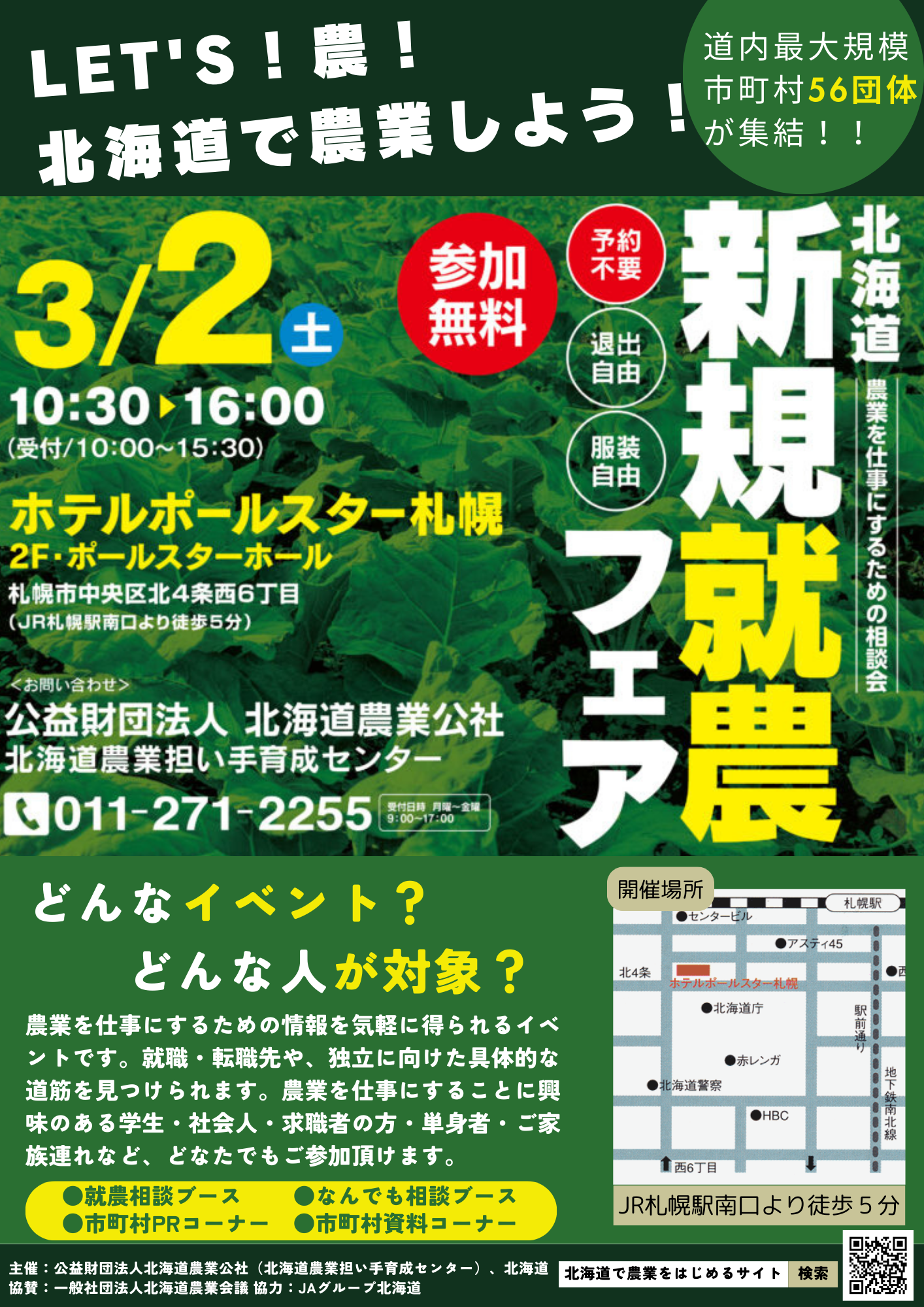 【過去最大級56ブース出展】来たる3月2日 北海道新規就農フェアを開催します!