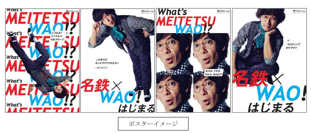 「名鉄×WAO!」を合言葉に、名鉄グループが提供したい価値や変革の方向性をお伝えするステートメントと共に、驚きやワクワクを滝藤賢一さんのさまざまな表情で表現したポスター計5種を、当社駅において、8月10日(土)より掲出します。