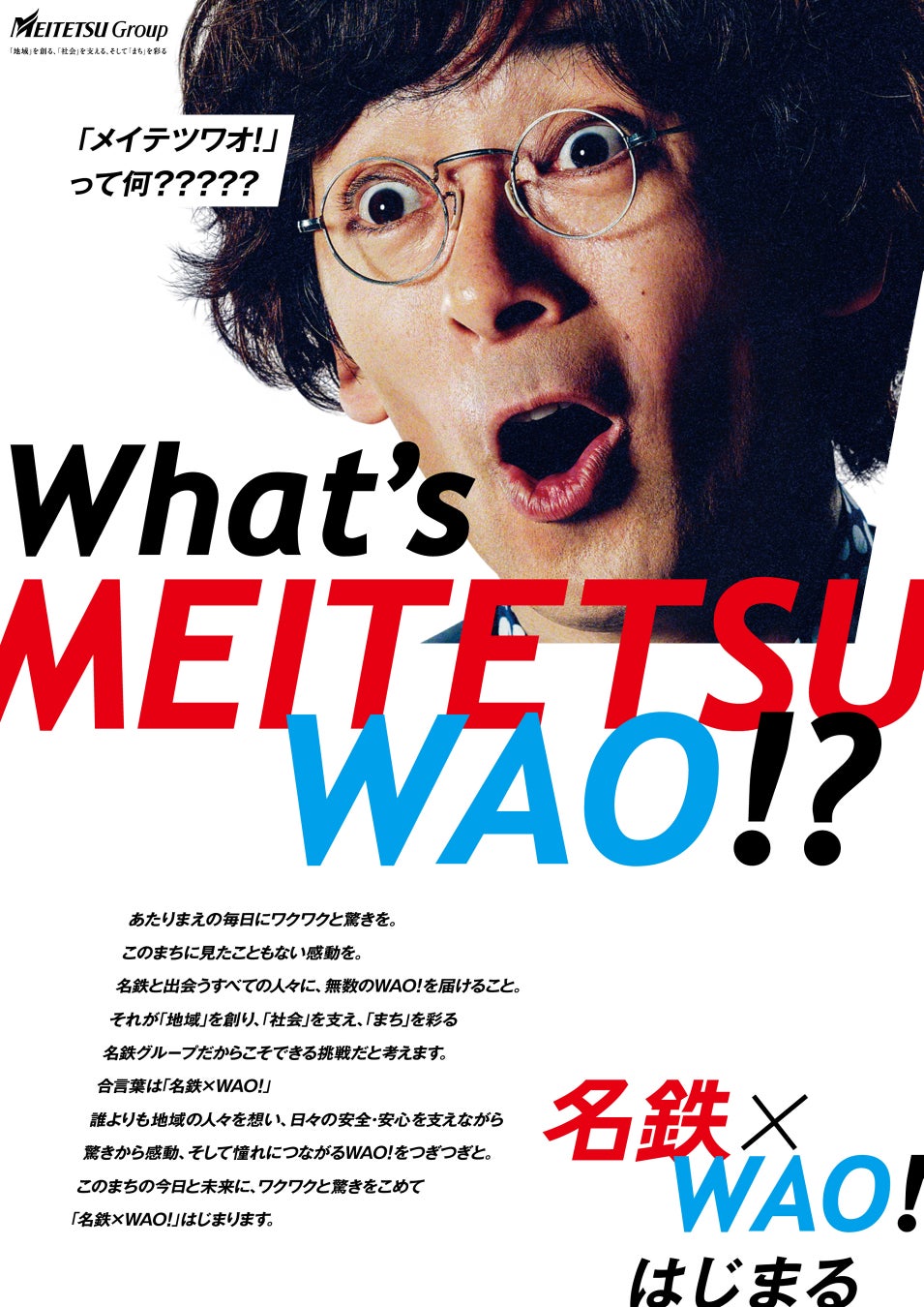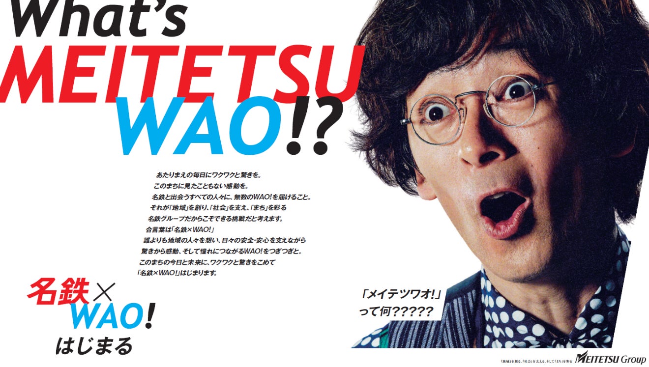 名古屋鉄道は、このたび、新たな名鉄グループ経営ビジョンを象徴的に表現する合言葉として、スローガン「名鉄×WAO!(メイテツワオ!)」を策定しました。これに合わせて、新しいビジョンに込めた想いを広く皆さまにお伝えするための各種プロモーションを、8月10日より順次開始します。