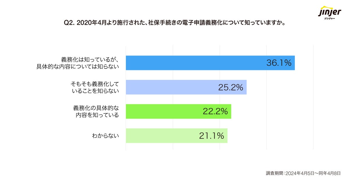 2020年4月に施行された「社会保険手続きの電子申請義務化」について、「具体的な内容まで知っている」のは約22%に留まる。