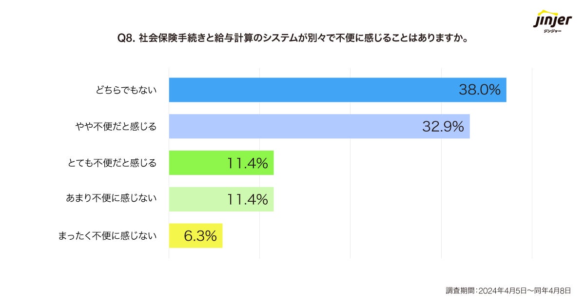 別々のベンダーを利用している企業へ、その不便さについて質問したところ、「やや不便だと感じる(32.9%)」、「とても不便だと感じる(11.4%)」と不便だと感じている企業は合わせて44.3%存在していることがわかりました。