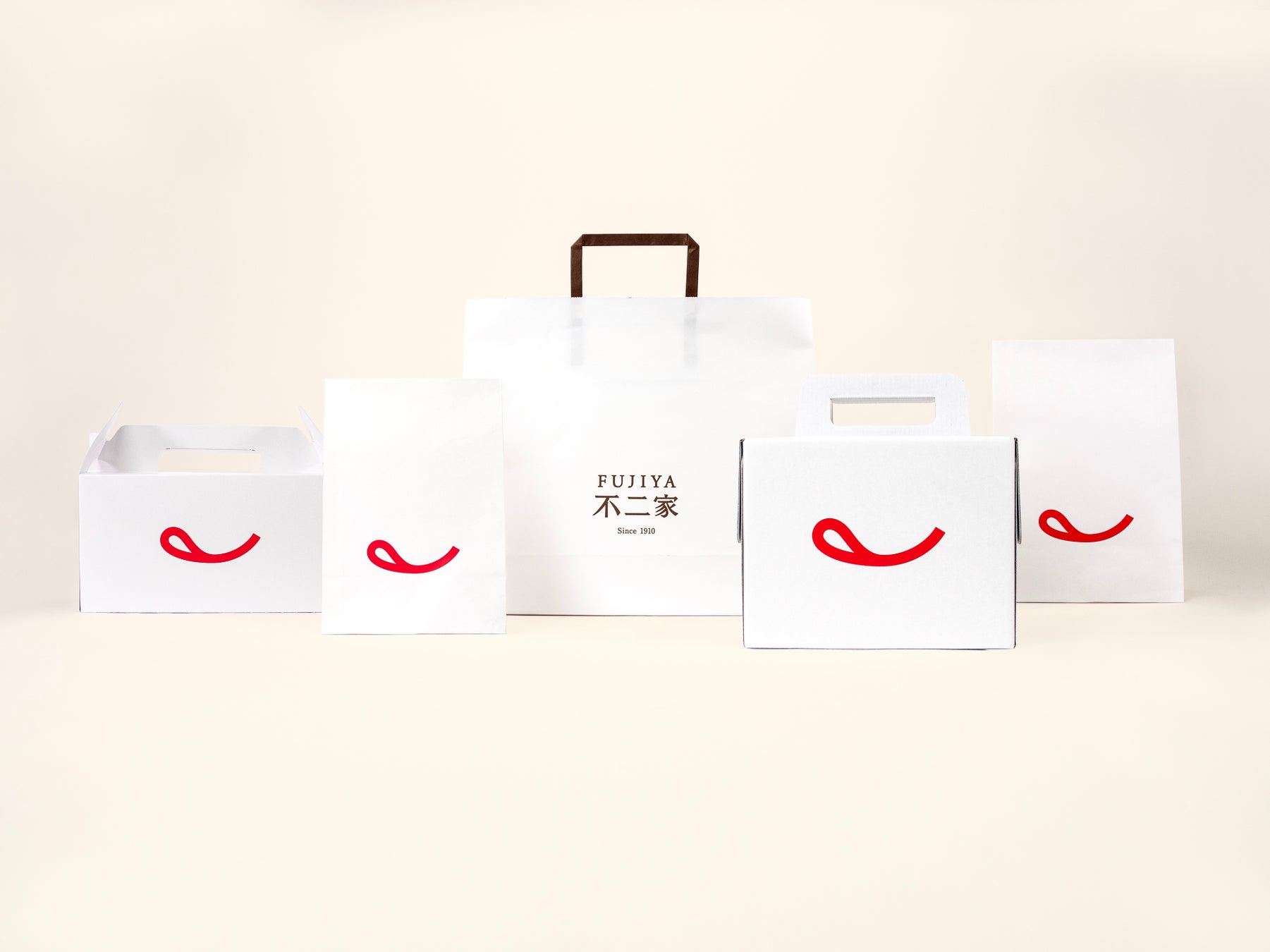不二家洋菓子店の新VIは、不二家のマスコットキャラクター「ペコちゃん」のトレードマークでもある、ペロっと出した舌をモチーフに新たなロゴマークをデザインした「スマイルマーク」を中心に、商品の上質感を表現した明朝体の書体デザインにリニューアルした「店名ロゴ」、変わらぬ想いを刻む礎として1961年に誕生した「ファミリーマーク」を組み合わせています。