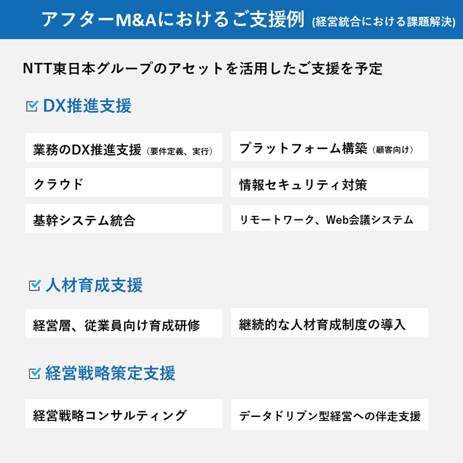NTT DXパートナー、NTT東日本にて地域企業の事業承継課題を引き出し、ストライクと共同で解決を図ります。加えて、事業承継課題解決後は、経営戦略の相談相手としてNTT DXパートナーがお客さまと伴走を続け、企業変革のサポートを実現します。