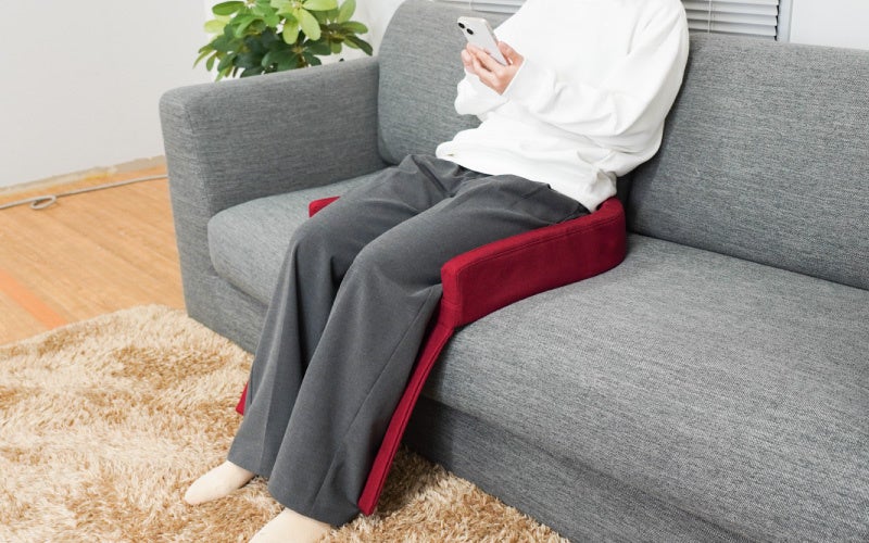 イスやソファなどの上に置いて使用。太ももの下左右2か所とふくらはぎ部分左右2か所の計4か所にヒーターを搭載。ふくらはぎ部分は反発力のあるポリカーボネート板を内部に搭載し、ヒーターがしっかりと足にフィットします。周囲にふちがある形状でフィットし快適な座り心地を実現。有線リモコンで3段階(強46度、中44度、弱42度)の温度調整が可能。