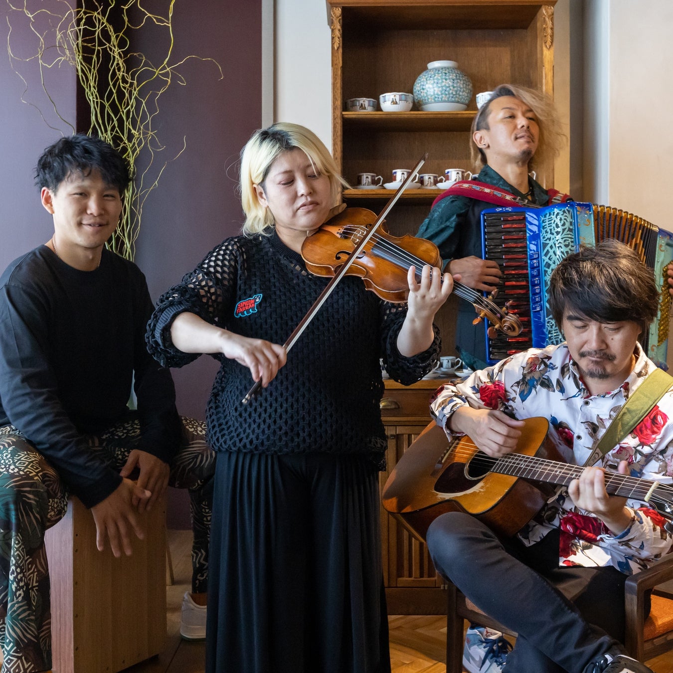 2013年、バイオリニスト・フミ子とギタリスト・松本ハルキによって結成。Duoとして各地で演奏活動を展開し、大阪・北大江たそがれコンサートを機に4人体制へ。ロック、カントリー、アイリッシュ、ジャズをブレンドしたアコースティック&エレクトリックなサウンドが特徴。2015年より主催イベント【弦乱舞会】を開催し成功を収め、2020年にはオンラインサロンを開設。2021年の東京ワンマンライブはSold Out、2022年以降は文化庁芸術支援事業に採択され、全国ツアーや学校公演、ホールコンサートを実施。これまでに5枚のフルアルバムをリリース。